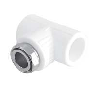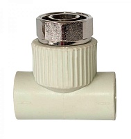Тройник с накидной гайкой 25x3/4 (мет. штуцер) TEBO белый (15/75)