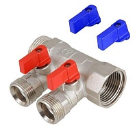Коллектор VALTEC с отсекающими кранами, 1"х2 вых. Евроконус 3/4 1/30