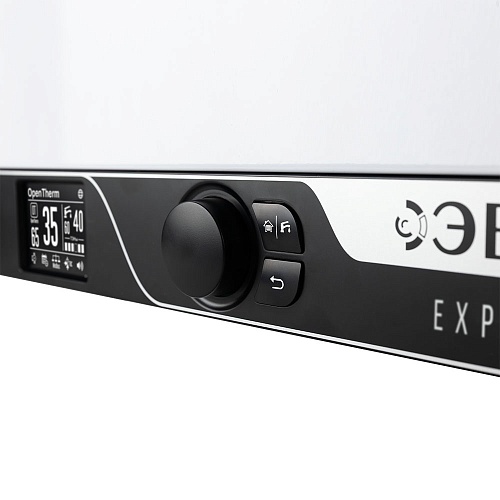 - Умное управление: Сердце системы — интуитивная панель с цветным 3,2" IPS-дисплеем, которая отображает всю информацию текстом. Управление через энкодер, Wi-Fi модуль для удалённого контроля со смартфона и поддержка протоколов OpenTherm/ModBus для интеграции в «умный дом».