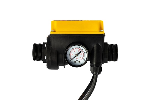 - автоматически выключает насос, если он не может создать давление верхнего порога при отсутствии потока жидкости;