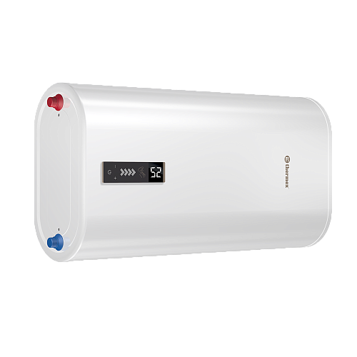 - Плоский корпус и удобный монтаж. Благодаря технологии Double Tank – два вытянутых цилиндра соединенных между собой создают плоский и компактный корпус глубиной 250 мм. Разместить такой водонагреватель можно в любом помещении или спрятать в нишу. Также водонагреватель имеет возможность универсального размещения: как вертикального, так и горизонтального, что делает его еще более удобным и компактным.