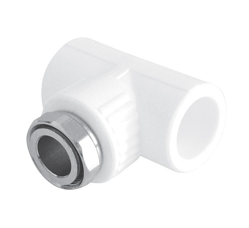 Тройник с накидной гайкой 20x1/2 (мет. штуцер) TEBO белый (25/150)