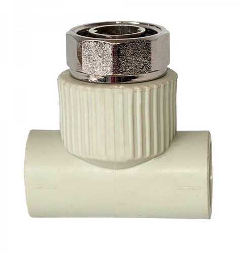 Тройник с накидной гайкой 20x1/2 (мет. штуцер) TEBO серый (25/150)