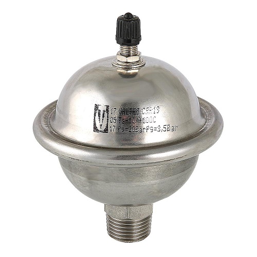 Гаситель гидроударов VT.CAR 20 представляет собой миниатюрный бак из нержавеющей стали марки AISI 304L с внутренней разделительной мембраной из эластомера EPDM. Материал корпуса шарового крана – никелированная латунь CW617N.