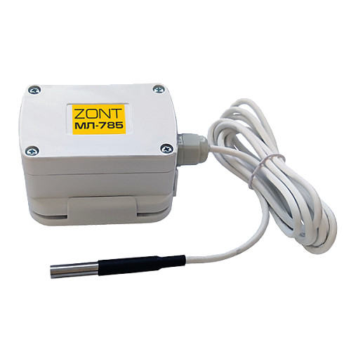 Радиодатчик температуры теплоносителя МЛ-785 в оригинальном пластиковом корпусе ZONT имеет выносной сенсор помещенный в металлическую колбу и предназначен для измерения температуры теплоносителя и ретрансляции данных на радиомодуль ZONT МЛ-590. Датчик применяется в составе систем автоматики ZONT и GSM сигнализаций Mega SX.