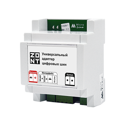 Универсальный адаптер цифровых шин предназначен для обеспечения обмена данными между автоматикой ZONT и отопительным котлом, поддерживающим один из цифровых протоколов: