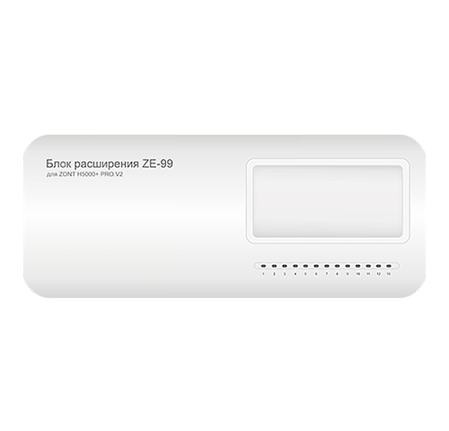 На объектах с многоконтурной системой отопления или со сложной инженерной системой для расширения возможностей универсального контроллера H5000+ PRO.V2 применяются блоки расширения ZONT ZE-99, которые увеличивают количество контролируемых входов и управляемых выходов.