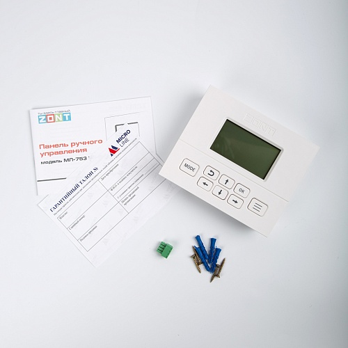 Используйте панель МЛ-753 в помещении для управления в ручном режиме и веб-сервис и мобильное приложение ZONT для дистанционного контроля.