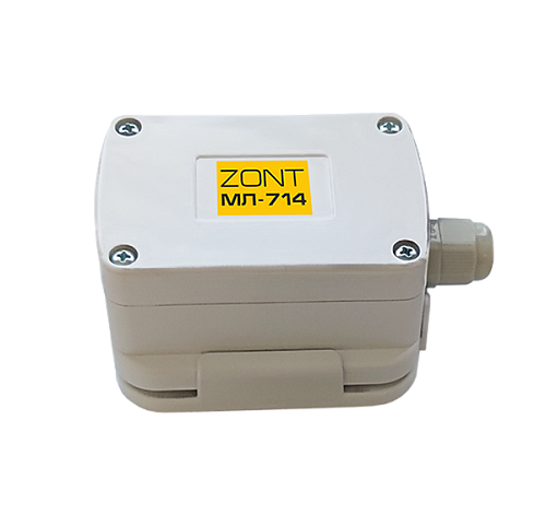 Радиопередатчик ZONT МЛ-714 предназначен для передачи сигнала о замыкании/размыкании “сухого контакта” проводного дискретного датчика к головному устройству по радиоканалу на частоте 868 МГц. Прием сигнала на стороне головного устройства осуществляется через радиомодуль ZONT МЛ-590 (приобретается отдельно).