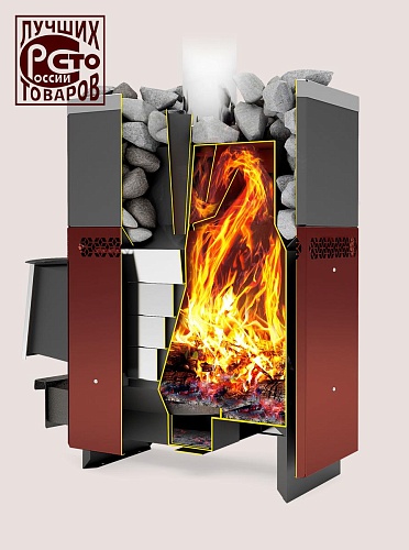 Особая конструкция нагревательных поверхностей обеспечивает умеренный нагрев парной до 90°С, в сочетании с отличным прогревом большой массы камней позволяет получить настоящую печь для русской бани.