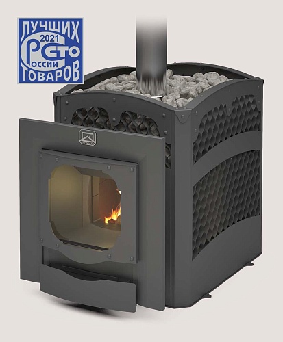 Большое количество качественно нагретых камней, обеспечивает стабильность температуры в парилке. Печь снабжена удобным ящиком зольника, который также является регулятором интенсивности горения. Колосник из литейного чугуна, являющийся элементом конструкции, обеспечивает равномерное устойчивое горение по всей длине топки.