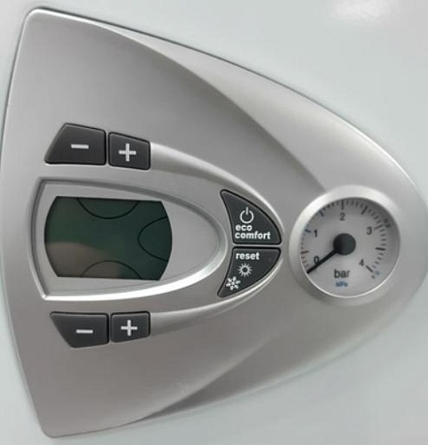 Удобное управление при помощи дисплея с подсветкой. Возможность подключения комнатных датчиков, в том числе и по протоколу OpenTherm. Возможность подключения беспроводного комнатного датчика Ferroli Connect для управления котлом с телефона.