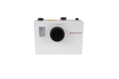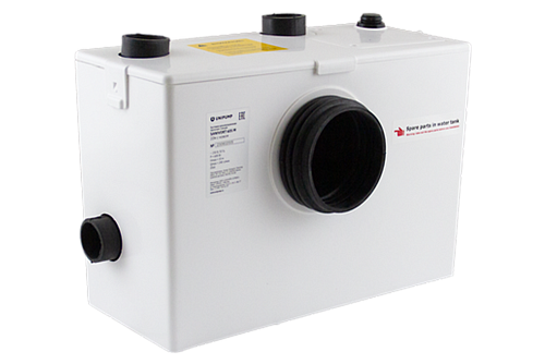 - Вход от туалета (DN 100), 2 входа (DN 40) от раковин и т. д., напорный патрубок (DN 40)