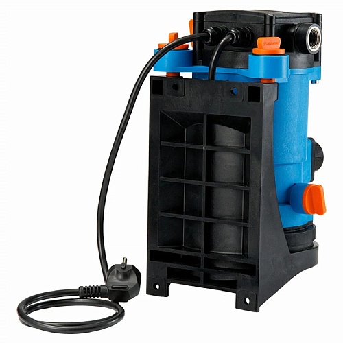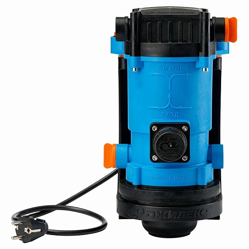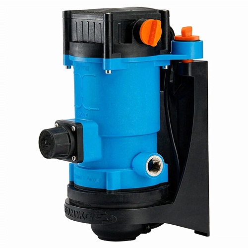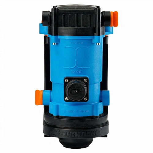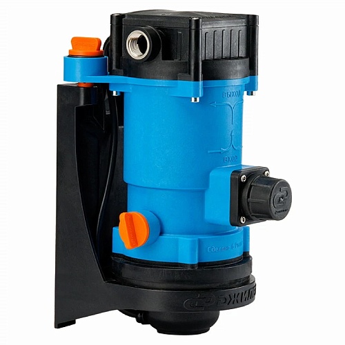 - Оснащен датчиком контроля протока, который в автоматическом режиме включает/выключает насос и защищает его от работы без воды (по «сухому ходу»).