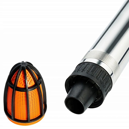 - Насос защищен от всасывания грязи и песка съемным водозаборным фильтром, который также упрощает чистку в случае загрязнения.