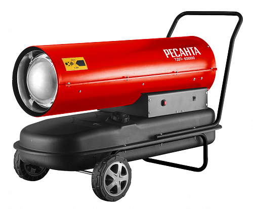 Дизельная тепловая пушка РЕСАНТА ТДП-65000 - функциональный обогреватель с прямым нагревом для отопления складских, строительных и других помещений.