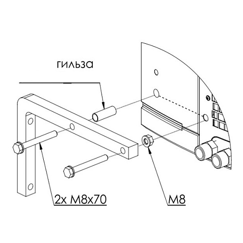 Монтажные крепления позволяют установить тепловую завесы в вертикальном положение около входного проема. Для фиксации кронштейна на корпусе тепловой завесы Sonniger Guard используются винты 2 x М8 под отверстия диаметром 9 мм.
