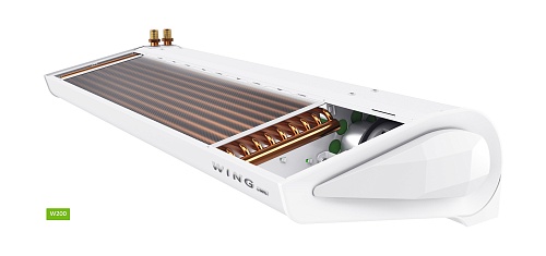 Водяные воздушные завесы VTS WING II W200 EC серии WING II - это устройства, задачей которых является создание невидимого воздушного барьера, отделяющего воздух внутри помещения от наружного воздуха. Минималистичная форма корпуса воздушной завесы WING, вдохновленная формой крыла планера, и элементы корпуса в форме граней бриллианта придают завесе неповторимую гармонию и элегантность. Энергоэффективный двигатель, производительный вентилятор и двухрядный нагреватель обеспечивают низкий уровень шума и максимальную эффективность устройства.