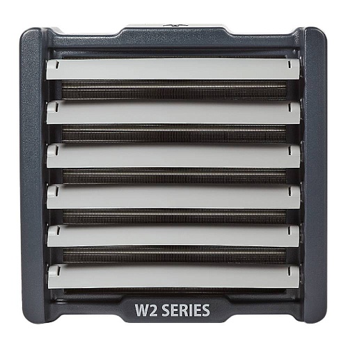 Полимерное покрытие на основе кремния значительно увеличивает срок службы теплообменника и при этом не снижает тепловой мощности и расхода воздуха. Модельный ряд состоит из двух приборов с одно- и двухрядным теплообменником номинальной тепловой мощностью 22 и 45 кВт соответственно.