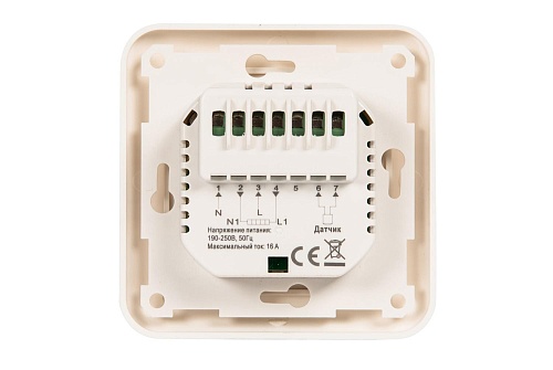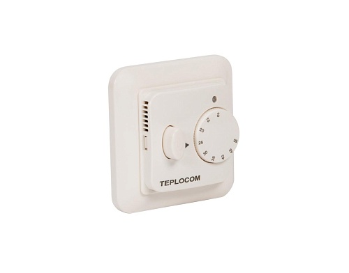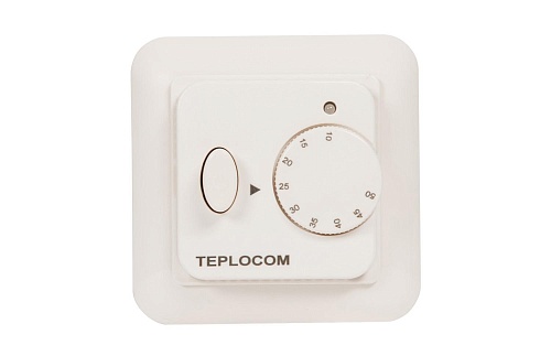 TEPLOCOM TSF-220/16A представляет собой прибор, устанавливаемый в обыкновённую внутреннюю электромонтажную коробку рядом с любой удобной розеткой. Высота установки — от 50 см. Если в доме есть дети - учитывайте это, однако имейте ввиду, что длина питающего провода от термоматов TEPLOCOM МНД и провода термодатчика составляет 2 метра. На лицевой панели TEPLOCOM TSF-220/16A есть градуированный диск управления (ручка) и сигнальный светодиод красного цвета, включающийся при подаче напряжения на тёплые полы, и мигающий в случае аварии термодатчика. Существующая мощность подключаемой нагрузки составляет 16 А, что позволяет подключать любые комплекты тёплых полов из линейки TEPLOCOM МНД.