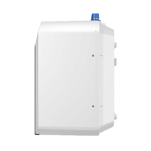 - Привлекательный дизайн: благодаря белоснежному прямоугольному корпусу со скруглёнными углами и тёмной вставке на фронтальной панели Thermex Blitz отличается стильным внешним видом. Подобный водонагреватель легко впишется в интерьер и будет сочетаться с общим дизайном помещения.