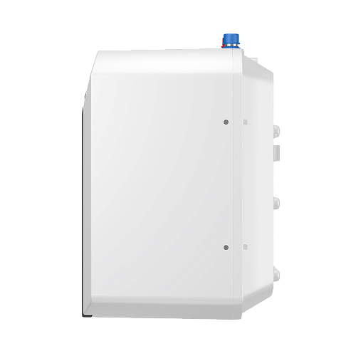 - Привлекательный дизайн: благодаря белоснежному прямоугольному корпусу со скруглёнными углами и тёмной вставке на фронтальной панели Thermex Blitz отличается стильным внешним видом. Подобный водонагреватель легко впишется в интерьер и будет сочетаться с общим дизайном помещения.