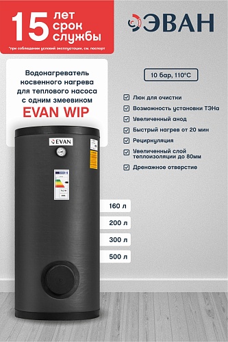 Бойлер косвенного нагрева ЭВАН WIP-HT-200 для теплового насоса с одним змеевиком