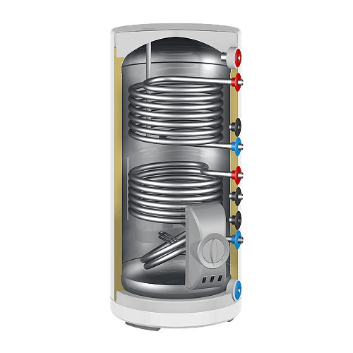 Два встроенных теплообменника. Комбинированные водонагреватели способны использовать тепло от системы отопления для нагрева воды, а также имеют встроенный ТЭН для работы от электросети. Оба теплообменника изготовлены из нержавеющей стали, устойчивые к коррозии и имеют высокую теплопередачу.Функциональность. Использование двух теплообменников существенно расширяет возможности использования водонагревателя - можно интегрировать его в две системы нагрева - например, отопления от котла и солнечный коллектор, используя их одновременно для быстрого нагрева воды, или попеременно, нагревая воду за счет котла отопления летом и солнечной батареи зимой. Кроме того, возможно подключить оба контура к одной системе и дважды использовать ее тепло для более быстрого нагрева.
